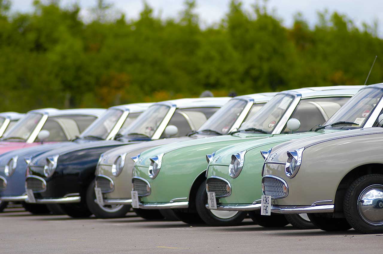 Organizer David Shaw, a guide at the Heritage museum, revealed that it was his daughter Laura who was the family’s Figaro fan. “Laura came here to an event, and she had the only Nissan Figaro,” he explained, “so we thought we’d organize this. We thought we might get half a dozen cars…”