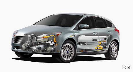 Focus Electric is powered by a lithium-ion battery system engineered by Ford and LG Chem, which is said to provide enough range for "the majority of daily driving habits of Americans" and a top speed of 84mph. It can be recharged in as little as three hours.