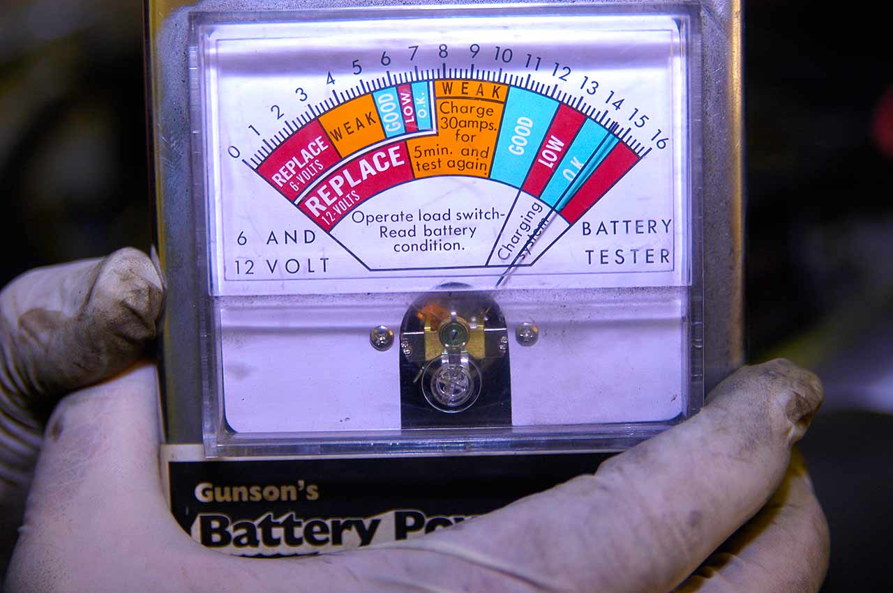 Check the battery with a test meter