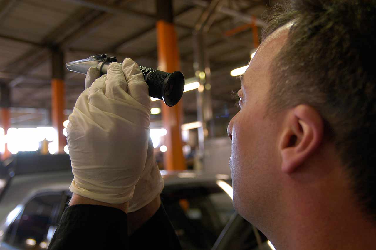 Pros use a refractometer to measure antifreeze concentration